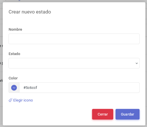 | Color | Este campo es un gestor de colores el cual es utilizado para asignar un color personalizado a los estados. |