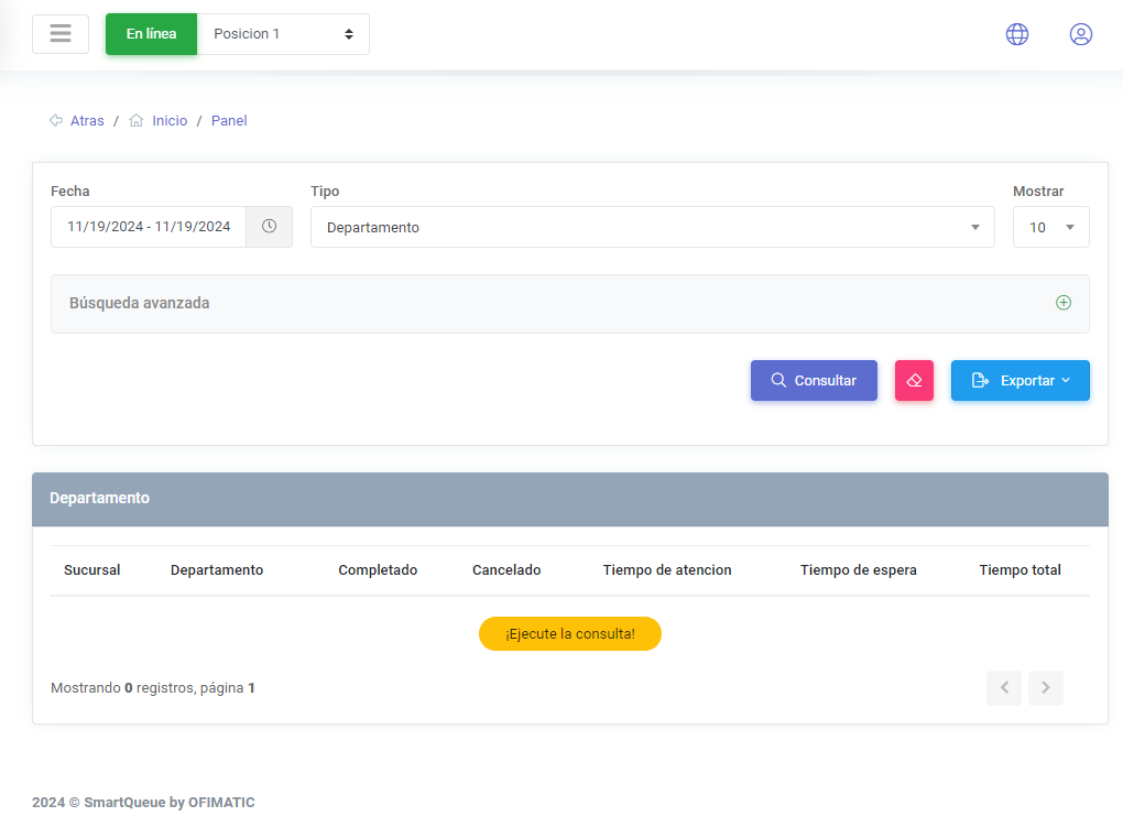 | Tiempo total | Muestra la suma del tiempo de atención y tiempo de espera. |